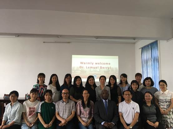 531日下午,应刘绍忠院长邀请,全美亚洲研究会会长、全美非裔研究会会长、美国大学理事会东部主席Dr. Lemuel Berry. Jr教授来我院交流,我院部分老师参加了座谈交流。