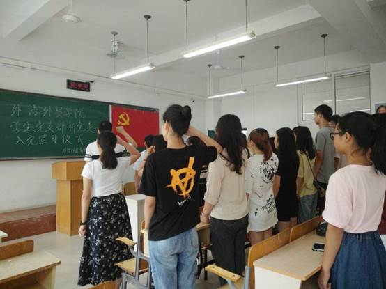 “我志愿加入中国共产党,拥护党的纲领,遵守党的章程……”全体党员高举右手庄严宣誓,声音铿锵有力。