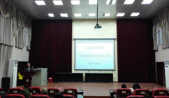 2018届毕业生即将奔赴工作岗位,为做好毕业生实习就业工作,强调安全文明离校纪律,我院于2017年12月11日、2018年1月4日在致远楼201、电教馆分别对国际贸易实务、报关与国际货运、商务英语三个专业毕业生召开了实习动员大会。学院党总支书记、院长舒昌、副书记盖菊梅、副院长张芳、教研室负责人和毕业班辅导员出席了大会,2018届全体毕业生参加了此次大会。