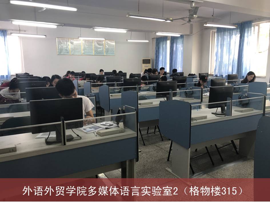位于桂林航天工业学院北校区格物楼315教室,设备总值约23万元,占地面积90 m2,建于2003年12月,实验室采用构架是蓝鸽LBD2000型语言实验系统,此实验室适合商务英语的专业语音训练和教学,满足对自主口语训练和口语考试的专业要求。该实验室可同时容纳64人进行学习及相关口语听力考试。