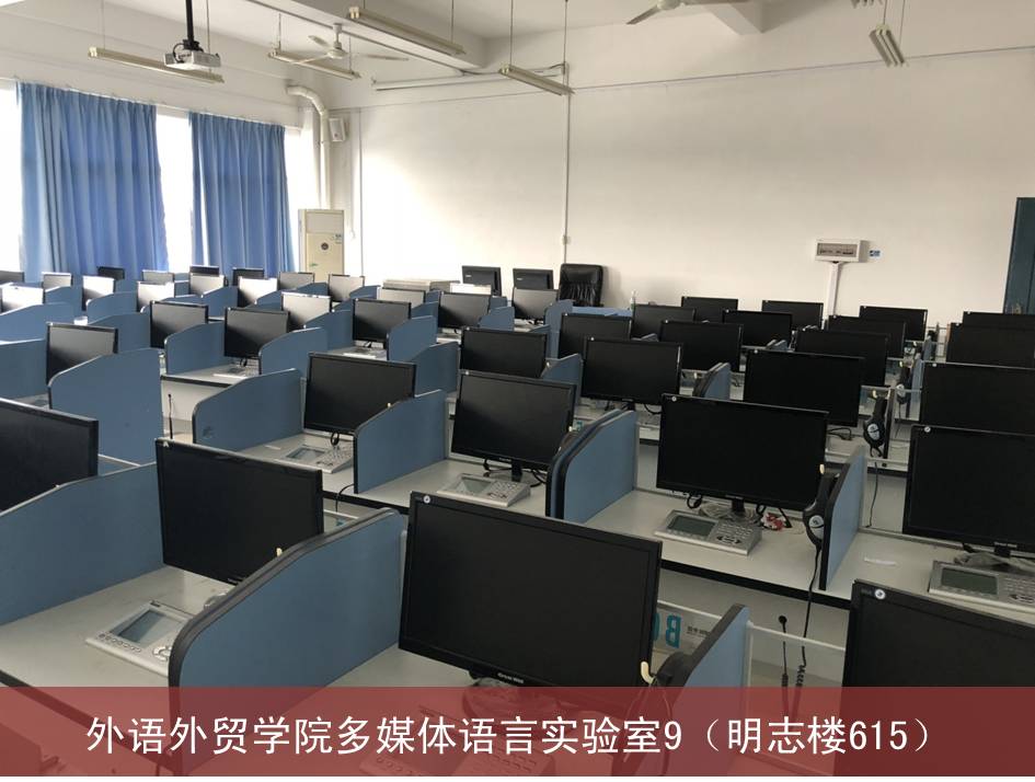 位于桂林航天工业学院北校区明志楼615教室,设备总值约19万元,占地面积90m2,建于2013年8月,实验室采用构架是蓝鸽LBD2000+型语言实验系统,此实验室适合商务英语的专业语音训练和教学,满足对自主口语训练和口语考试的专业要求。该实验室可同时容纳58人进行学习及相关口语听力考试。