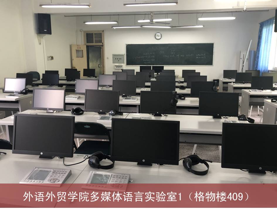位于桂林航天工业学院北校区格物楼409教室,设备总值约22万元,占地面积90 m2,建于2017年11月,实验室采用构架是蓝鸽LBD2000+型语言实验系统,此实验室适合商务英语的专业语音训练和教学,满足对自主口语训练和口语考试的专业要求。该实验室可同时容纳48人进行学习及相关口语听力考试。