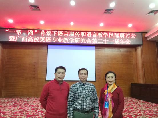 广西高校英语专业教学研究会主办、广西师范大学漓江学院承办的广西高校英语专业教学研究会第二十一届年会12月16日在桂林碧居山庄酒店举行。bet365开户在线院长舒昌,商务英语专业负责人黄晓林教授、商务英语专业教师傅治夷教授参加了本届年会。